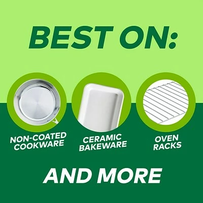 Safe on non-coated cookware, oven grates, concrete floors, and more