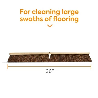 Provide flexible cleaning options for your janitorial staff with this push broom head. A heat-resistant design stands up to high-friction scrubbing, and the stiff natural fibers contend with heavy dirt effortlessly. This broom head features threaded holes for easy setup with compatible broom handles. With a 36-inch width, this Coastwide Professional push broom head offers an ideal solution for cleaning large swaths of flooring.