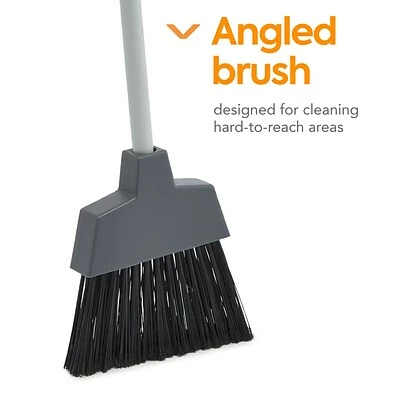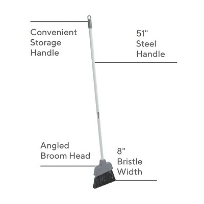 Angled broom is designed to reach into the tightest corners easily