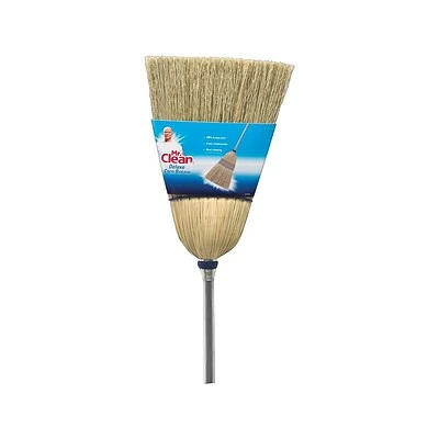 Keep floors free of dust and dirt with this corn broom. Featuring an extra-large head, it covers a wide area with every sweep to easily clean large spaces, and the corn bristles provide strong resistance. Add this Mr. Clean Deluxe broom to cleaning kits for safe use on most floor types.
