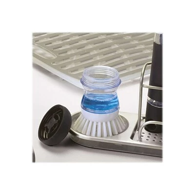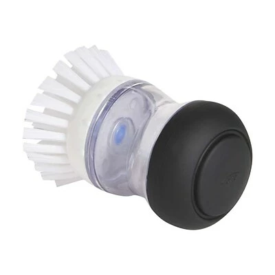 Provide more leverage for scrubbing and soap on demand with this soap brush. Its contoured shape provides optimal comfort, and the durable nylon bristles are safe for nonstick cookware. This OXO Good Grips soap dispensing palm brush has a soft non-slip grip.