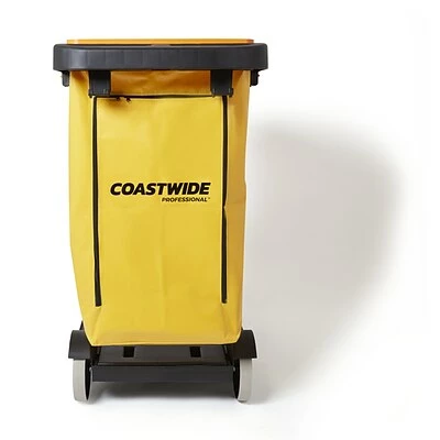 Attach the Coastwide Professional Click-Connect Trash Can Dolly (CW55230)* for large trash pickup jobs while restocking and cleaning the building. *Item(s) sold separately
