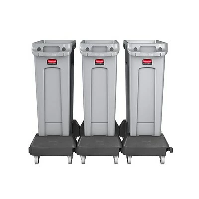 The Rubbermaid Slim Jim resin dolly is designed to support and transport containers smoothly and efficiently through any commercial facility. Features a side clip-on connection that allows you to train several dollies together for collection and transportation purposes. Foot pedal release makes disconnecting dollies quick and easy. Structural foam construction ensures maximum durability in commercial environments.