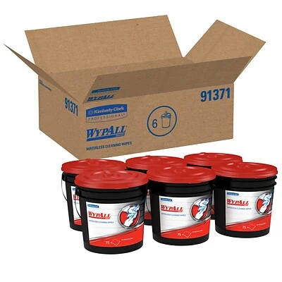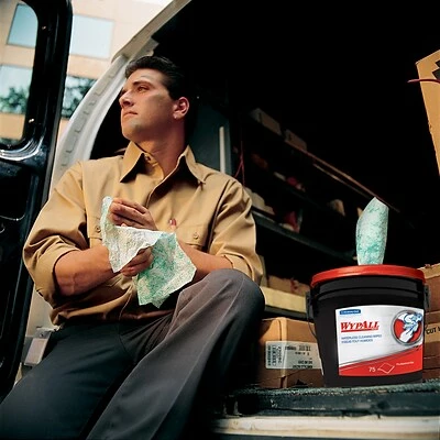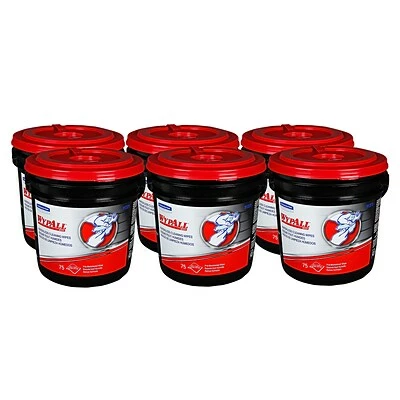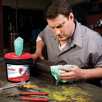 Banish grease and grime using these disposable pre-saturated wipes instead of shop towels. These alcohol-free wipes contain natural citrus solvents to cut through oil along with soothing ingredients to protect skin. Each of the six pop-up containers of WypAll industrial cleaning wipe has a textured side for scrubbing tough stains and a smooth side for wiping hands and surfaces and contains 75 wipes per container.