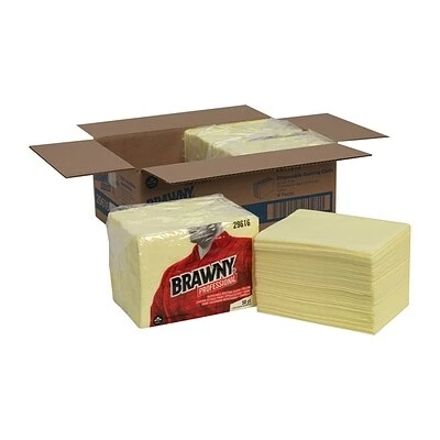 Brawny Professional dusting cloths are a flexible alternative option for dusting that can get anywhere you can slide a sheet of paper. These versatile cloths come quad-folded and unfold to a large size to clean your whole desk with ease, including behind pesky books and office organizers. The poly packaging takes up little space in your storage closet and flexes to fit in compact areas and prevent waste. This packaging is moisture-resistant to protect your cloths from getting wet or damaged before use.