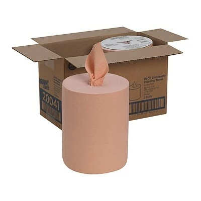 GP Brawny Professional disposable cleaning towels mop up all types of messes with a sturdy design that allows for fast moisture absorption. Ideal for absorbing water, grease and oil, these towels come in orange for a heavy-duty look. Each sheet features a large size for more cleaning range, reducing the need to use multiple sheets. Constructed of durable fibers, these towels offer bulk and strength to handle nearly any mess. With two rolls per case, you can refill more than one bucket.
