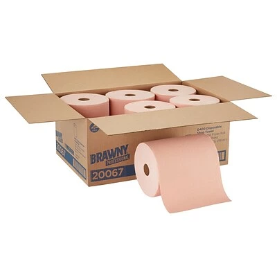 The Brawny® Professional D400 Disposable Shop Towel is designed for use in the Brawny® Professional automated dispenser whose technology delivers higher efficiency than cloth rags.