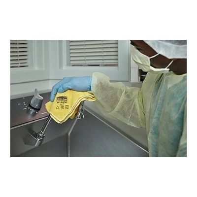 Scrub away messes easily with these yellow microfiber cloths. The durable stitching and double-finished edges make these cloths a long-lasting choice that stands up to extensive laundering, while the bright yellow hue allows for color-coding, reducing the chance of cross contamination. These Rubbermaid HYGEN 16-inch microfiber cloths eliminate microbes, making them great for wiping down high-traffic areas.