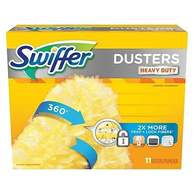 Maintain a regular cleaning schedule with this 11-count pack of cloth dusters that fit onto a Swiffer short or extendable handle. The specially coated fibers and all-direction design let you clear dust off electronics, furniture, appliances, or vehicle interiors. These heavy duty Swiffer refill dusters hold up to intensive cleaning sessions.