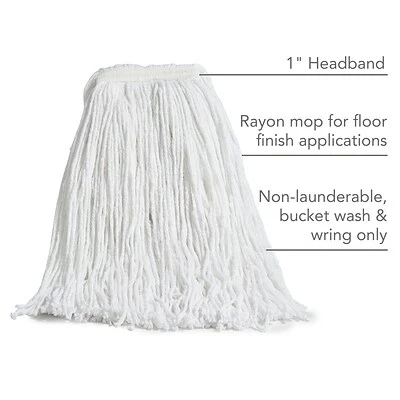 Manage daily light-duty cleaning tasks with this white wet mop head. The non-launderable construction provides one-cycle use, while the cut-end design is a cost-effective option for everyday general cleaning. Made of highly absorbent cotton material, this Coastwide Professional cut-end white wet mop head soaks up heavy spills, and the 1-inch headband makes it ideal for use with side gate handles.