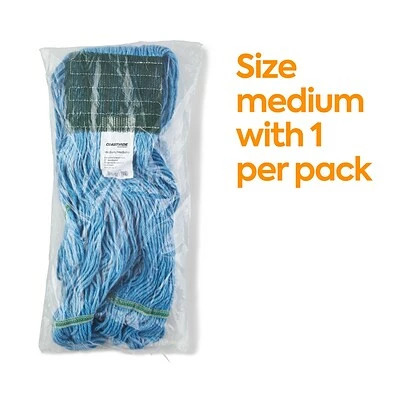 Bring a durable cleaning solution to your cleaning supply closet with this wet mop head. The rayon-and-cotton blend releases liquids quickly and provides an ideal solution for disinfecting floors. A looped-end design reduces fraying and tangling for added durability, while the launderable design helps extend the life of this mop head. Featuring a 5-inch headband, this Coastwide Professional large looped-end blue rayon/cotton blend wet mop head works with jaw-style mop handles.