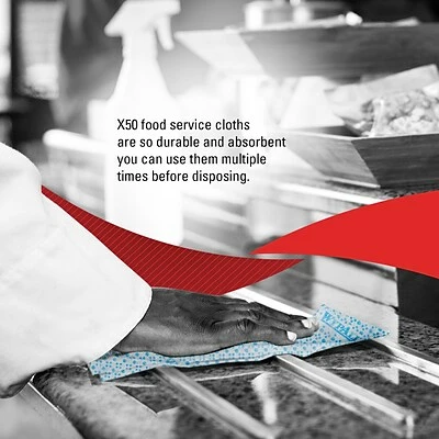 If you’ve been using either laundered towels or cloth rags for foodservice prep, it’s time to make the switch to the Wypall cloth – it is a hygienic alternative. This cloth is made of high-tech, fast-absorbing HydroKnit material. It is suitable for removing dirt, oil, and grime in food service industries. The cloth features a textured surface that helps efficiently pick up food particles. Plus, it comes conveniently and compactly packaged in a quarter-fold format and is so sturdy that it can often be used more than once.